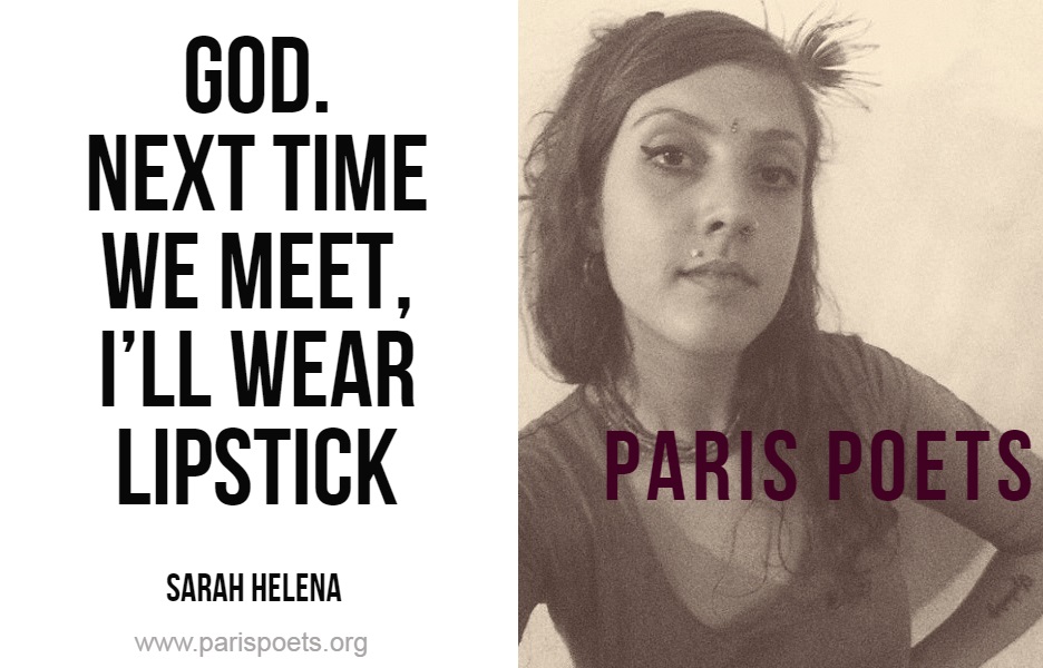 Sarah Helena was born and raised in the sylvan countryside right in the middle of Germany where once the Brothers Grimm got inspired to write Little Red Riding Hood. She understands life as a fairy tale. After spending her childhood and teenage years using the same four guitar chords for every song she wrote, she finally succumbed to her laziness of perfecting her musical skills. Instead she sat down at an old typewriter in her old room in London, where she escaped to after school, to let a stream of strange words flow out. She realised, the person that lived inside her had a few things to say, so she continued writing and eventually read her work out loud at open mics in Paris, where she later lived of cheese, wine and poetry and worked as a waitress which all felt quite bohemian. She now resides in Berlin continuing to write, albeit with pen and paper since the ribbons of her lovely old typewriter went dry and the thought of ordering those on Ebay makes her anxious. Sarah likes 60s rock’n’roll, sandalwood incense and the thought of a free Tibet. She dislikes pollen, people who walk slowly in cities and the Chinese Communist Party.